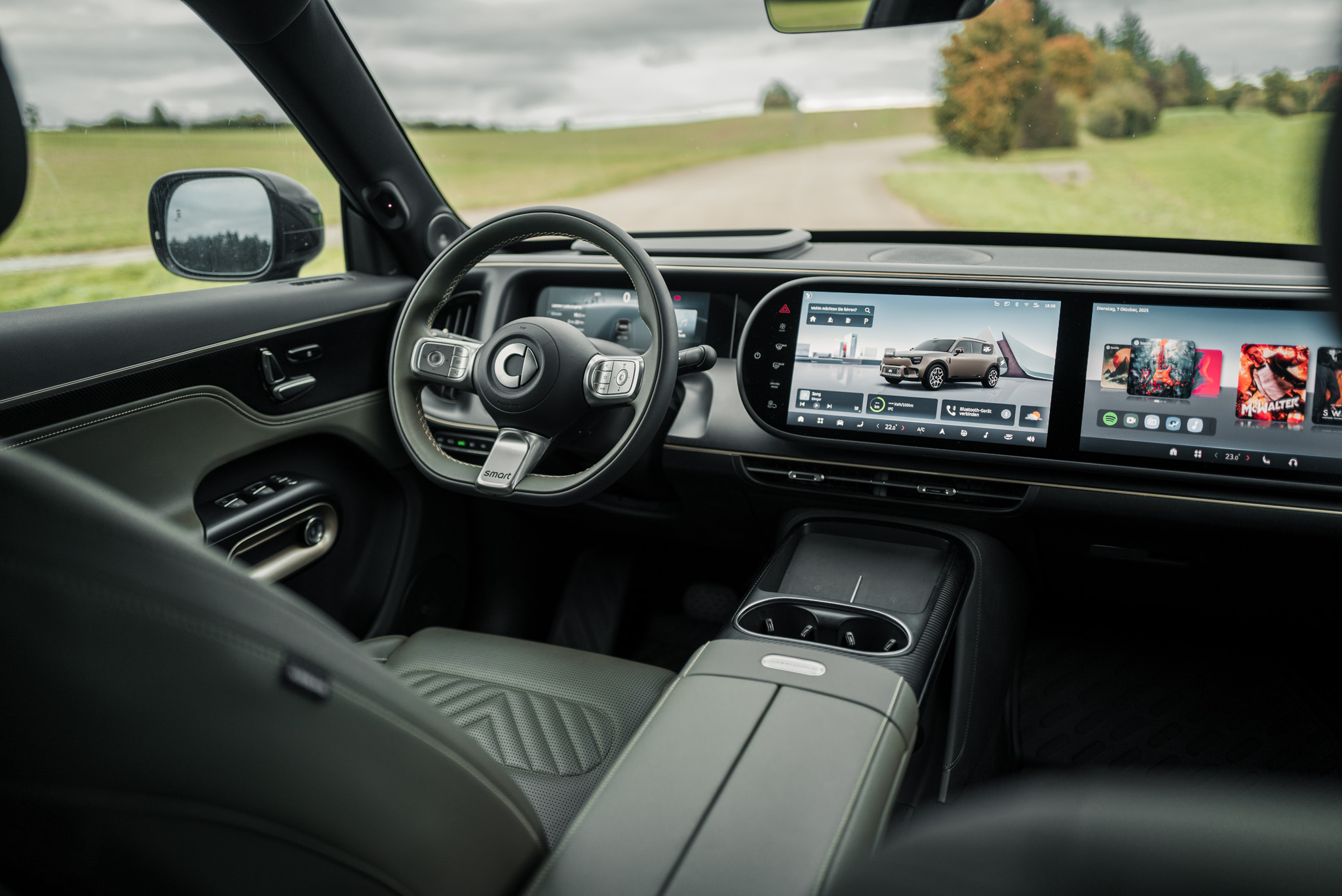 Die Summit Edition ist innerhalb der smart-#5-Familie klar positioniert: das Abenteuer-orientierte Sondermodell. Serienmäßig mit Allradantrieb, elektrischer Anhängerkupplung und der sogenannten Adventurers’ Collection hebt sie sich deutlich von den anderen Lines ab. Dazu gehören unter anderem: Dachträger, Unterbodenschutz, seitliche Trittstufen, Seitentasche, Seitenleiter. Auch wenn das ganze ein bisschen Show ist, ist es ein Paket, das dem Fahrzeug einen klaren Einsatzzweck verleiht – ohne dabei den Premium-Anspruch zu verlieren.