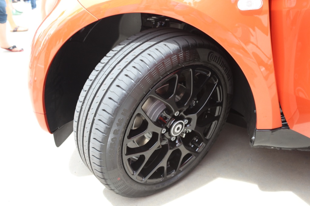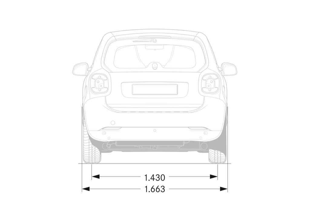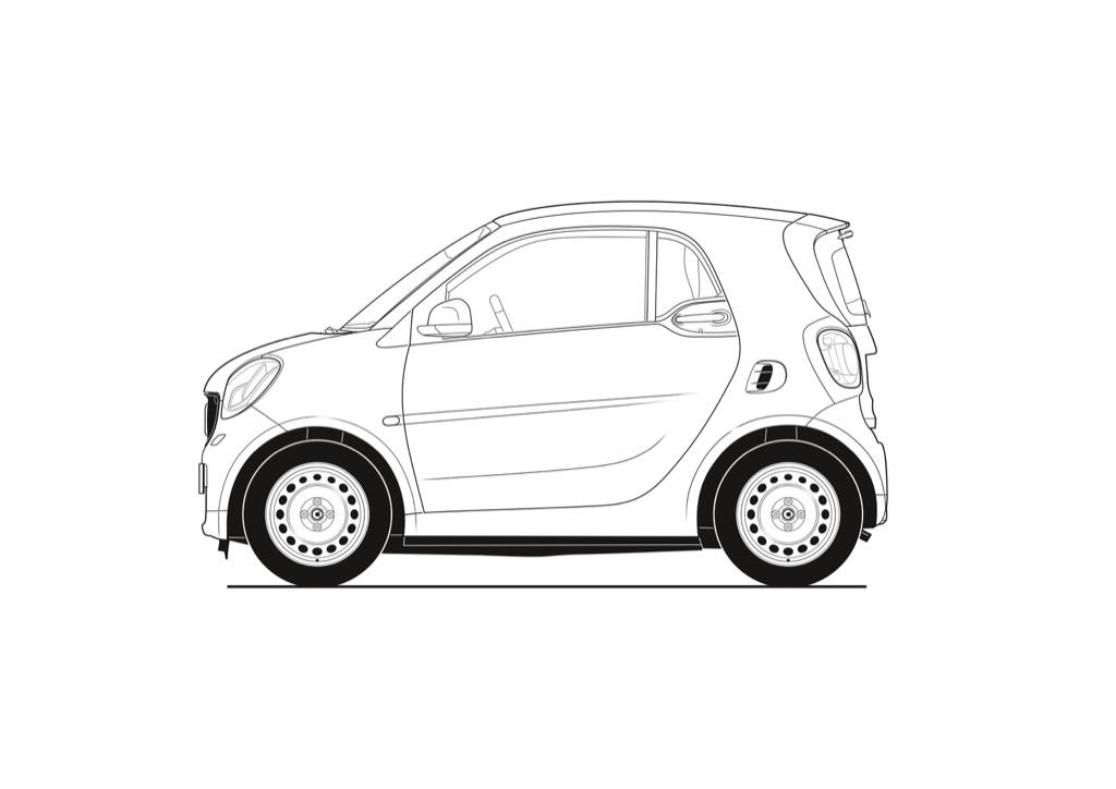 Extrem kurze Überhänge an Front und Heck – auch die neue smart Generation besitzt diese typischen Proportionen. Die Räder sind außerdem dank der um 100 mm verbreiterten Spur noch weiter nach außen gerückt. Diese charakteristischen Proportionen bieten hervorragende Übersichtlichkeit und Wendigkeit und erlauben zusammen mit dem Heckmotor eine Fahrgastzelle mit konkurrenzlos viel Platz auf kompaktem Raum. Markentypisch für smart ist auch die farbliche Trennung von tridion Zelle und bodypanels.