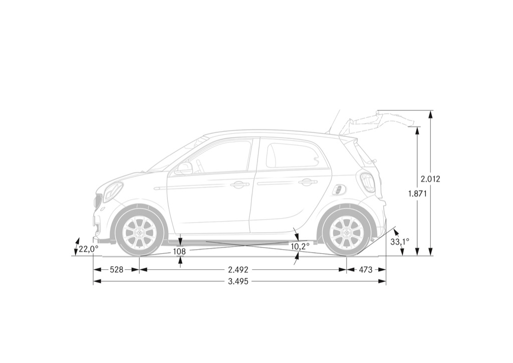 Die wichtigsten Abmessungen der beiden neuen smart Modelle:
