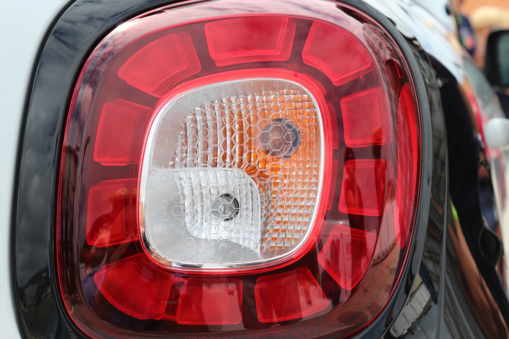 Die von der tridion Zelle eingefassten rhombischen Heckleuchten erinnern an die erste smart Generation und betonen ebenso wie die große Spurweite die Breite im Heckbereich. Auf Wunsch ist in Verbindung mit dem LED & Sensor-Paket ein einzigartiges LED-Erscheinungsbild verfügbar: Pro Rückleuchte sind insgesamt elf einzeln beleuchtete Cubes ringförmig angeordnet und sorgen für ein prägnantes Nachtdesign. In das Klarglas über Blinker und Rückfahrscheinwerfer in der Mitte der Leuchte sind wiederum die typischen Bienenwaben eingeprägt.