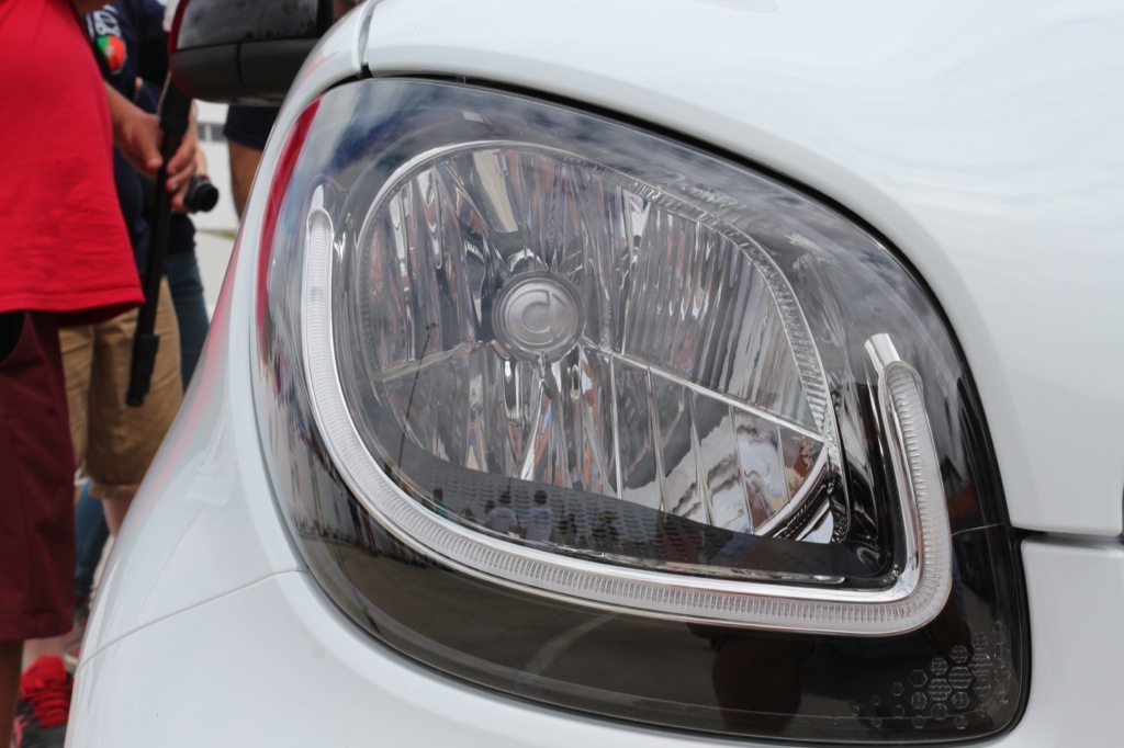 Die rhombischen Frontleuchten sind oben leicht angeschnitten und wirken so sportlich-sympathisch. Für ein charakteristisches Design sorgt das Tagfahrlicht in U-Form. In Kombination mit dem LED & Sensor-Paket verfügen die Frontscheinwerfer über eine Welcome-Funktion: Beim Aufschließen des Autos pulsiert im Scheinwerfer das Licht – der smart scheint seinen Besitzer zu begrüßen.