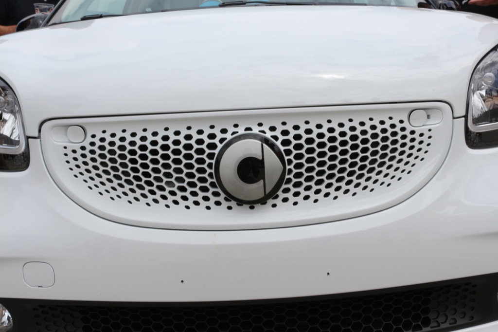 Selbstbewusstsein demonstriert auch das deutlich größere und weiter entwickelte smart Logo in der Mitte des Grills. Es ist jetzt dreidimensional, fast kugelförmig geformt und harmoniert so mit den deutlich sinnlicheren Formen des smart. Wie alle – sparsam verwendeten – Chromakzente ist das Logo nicht hochglänzend, sondern mattiert.
