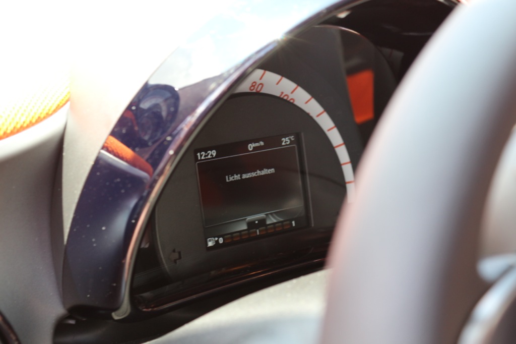 Das Kombiinstrument und dessen halbrunde Segmentierung für Geschwindigkeit und Warnanzeigen zitiert die bisherigen smart Modelle, besitzt gleichzeitig aber eine neue Optik. Die prägnanten Kugeldüsen der Luftausströmer sind einfach und spielerisch zu bedienen. Ungewöhnlich ist ebenso die Optik der zentral angeordneten Bedieneinheit für die Klimatisierung: Auf einer Skala in der Mitte lässt sich die gewünschte Temperatur mit Hilfe einer verschiebbaren Lupe einstellen.