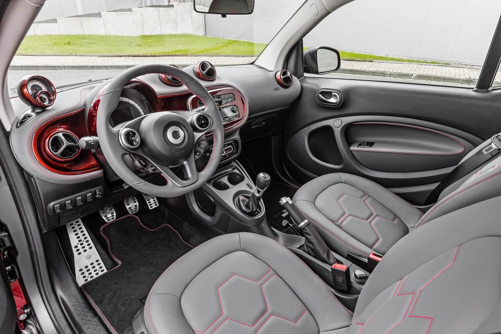 Bereits auf dem Pariser Autosalon hat smart die ersten tailor made Modelle der neuen Baureihe 453 gezeigt. Zu ihren besonderen Merkmalen zählen die Sonderlackierung in „evening red“ beziehungsweise „darknight blue“ sowie die individuelle Belederung von Sitzen und Lenkradkranz mit Nappa-Leder in „Graphit“ beziehungsweise „Elfenbein“.